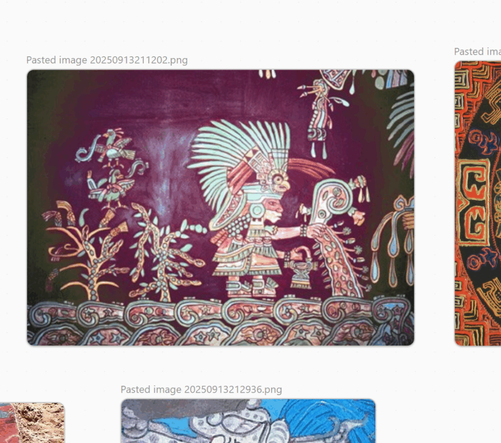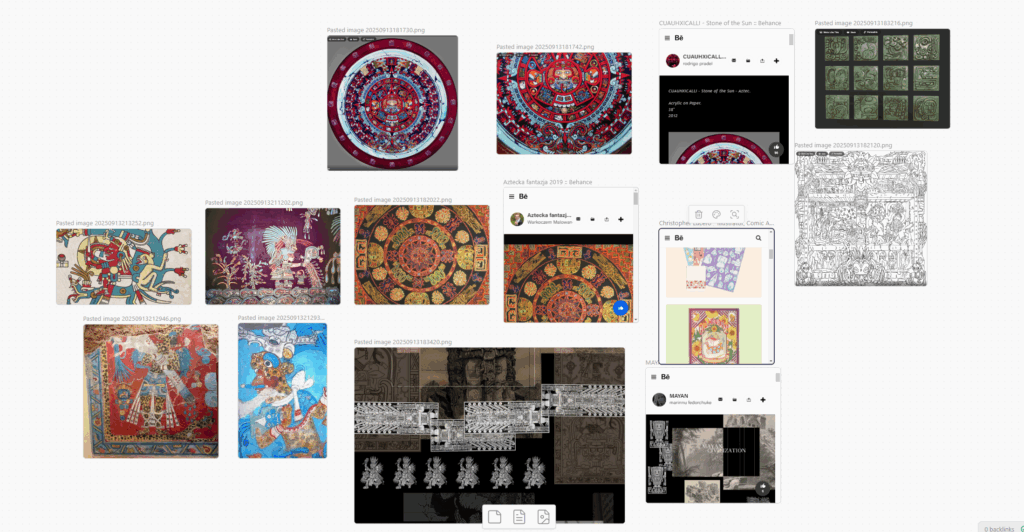 My project, Collective Verse, aspires to act as a reflection on ancient, historical aspects of Mesoaamerica and how it may relate to modern experience. I find it challenging trying to research this aspect of the past. I clearly need to visit locations and access these murals. I’m also torn at the messy attempts to romanticize aspects of an indentity may be so heavily removed from.